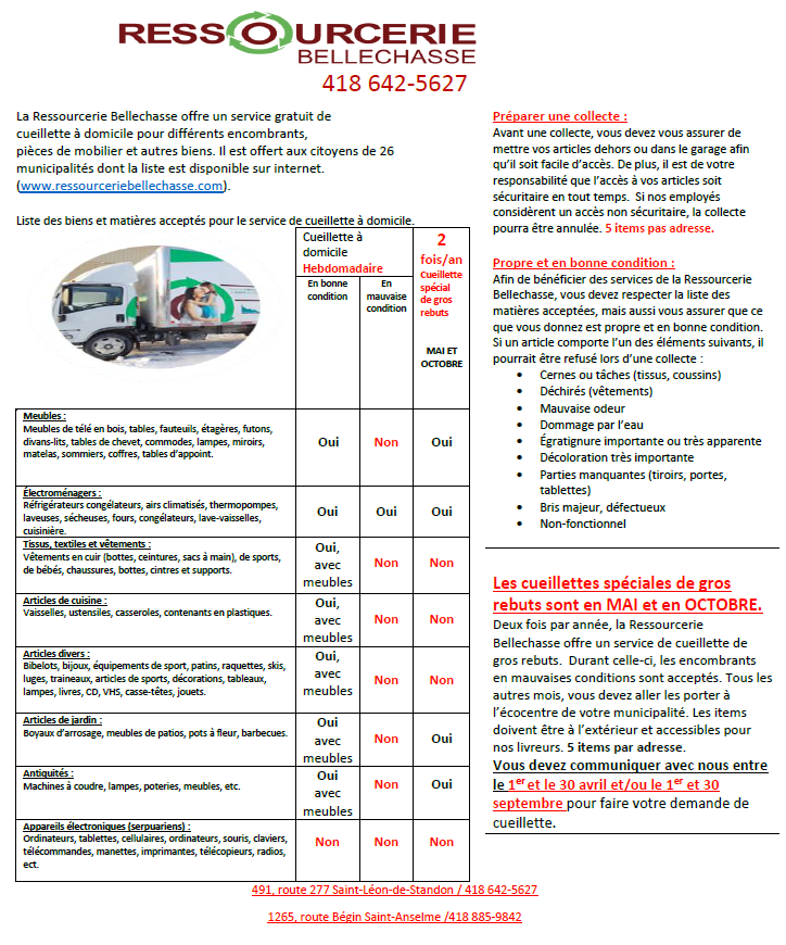 INFORMATIONS DE LA RESSOURCERIE DE BELLECHASSE